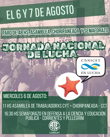 Trabajadores del sistema científico y universitario realizarán un paro nacional este miércoles 6 y jueves 7 de agosto, en reclamo por la mejora de condiciones laborales, acceso a becas, aumento salarial y financiamiento adecuado para organismos clave. La convocatoria, impulsada por ATE-CONICET, se da ante la falta de respuestas por parte del Directorio del organismo y el creciente vaciamiento del sector.