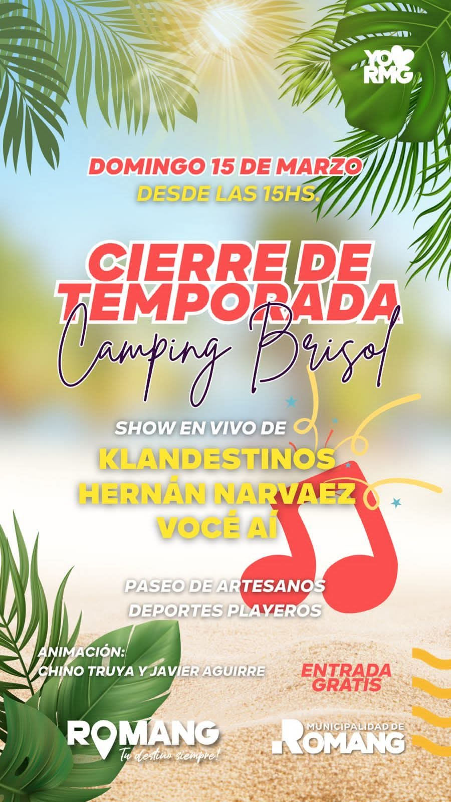 La Municipalidad de Romang invita a la comunidad a participar del gran cierre de temporada de verano que se realizará este domingo 15 de marzo en el Camping Brisol.