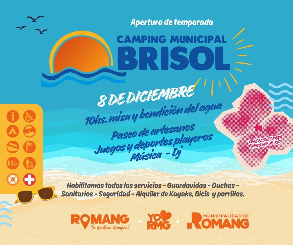 La Municipalidad de Romang anunció la apertura oficial de la temporada de verano con una jornada especial en el Camping Municipal Brisol, a realizarse el lunes 8 de diciembre de 2025 desde las 10:00. La celebración comenzará con una misa y la tradicional bendición del agua, marco simbólico que dará inicio a un día cargado de propuestas para toda la familia.
